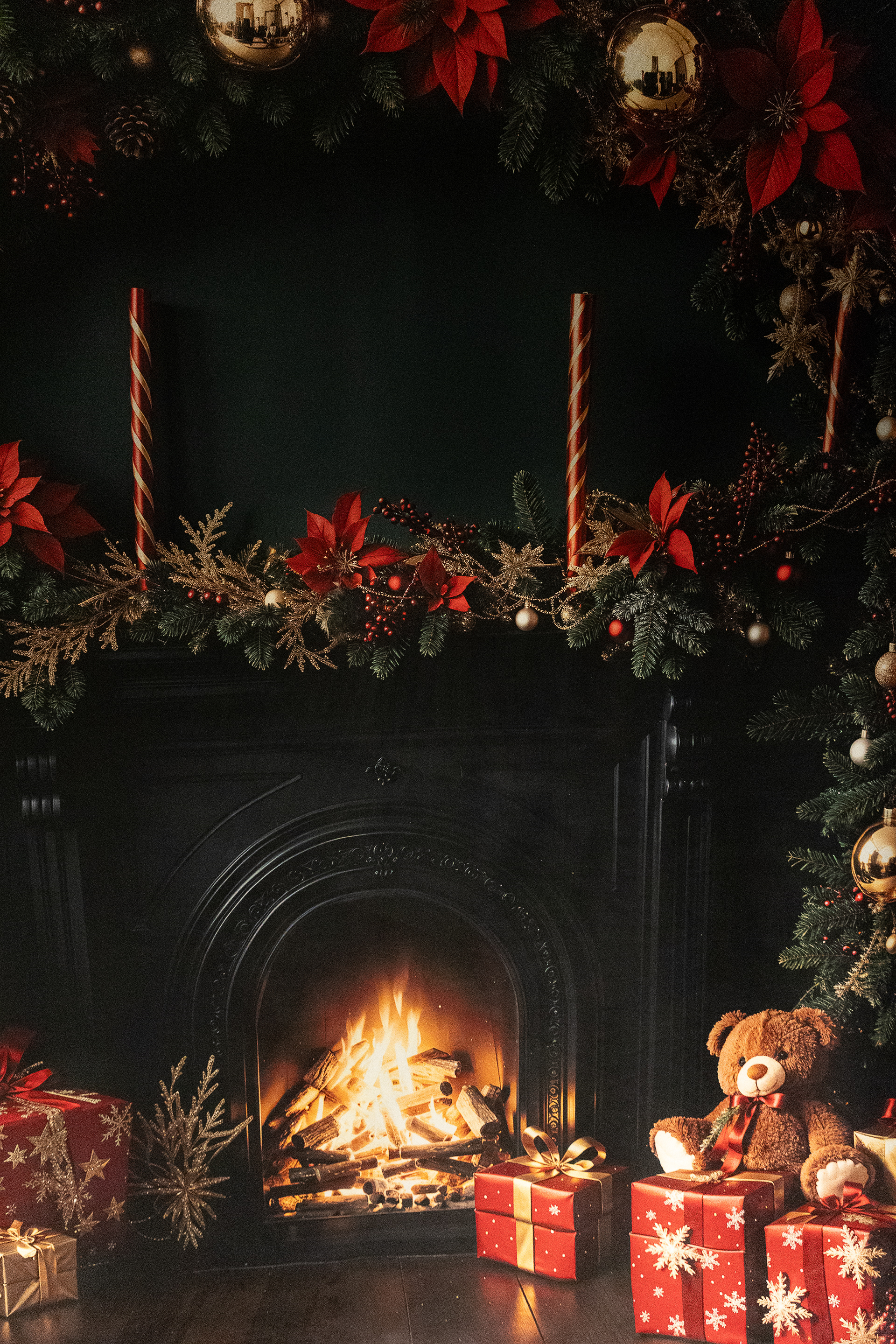 De fotostudio wordt omgetoverd in een magisch kerstparadijs. Kies zelf je setting en decoratie.